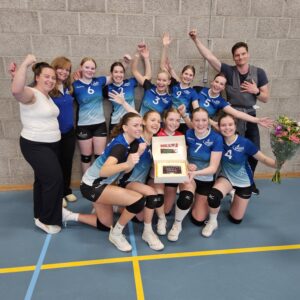 De meiden van de A1 zijn. afgelopen zaterdag in Meddo tegen Mevo A1 kampioen in de 1e klasse geworden. De Borculose meiden zouden met de winst van een set kampioen zijn. Mevo, hun enige concurrent, moest vier sets winnen voor het kampioenschap. De meiden gingen toch met enige vrees naar Meddo. Het is er niet alleen spelen tegen een goede tegenstander, maar ook spelen in een klein zaaltje met een laag plafond. Iets dat ze niet gewend zijn. De bergruimte in het zaaltje was omgetoverd tot een tribune en die was heel erg goed gevuld met rumoerige supporters van beide teams. De meiden begonnen heel zenuwachtig aan de wedstrijd, maakten veel fouten en stonden in een ommezien op flinke achterstand. Maar langzaam ging het steeds beter en werd de achterstand bijna in zijn geheel weggewerkt tot 25-23. In de tweede set werd het goede spel doorgezet en dat leverde winst op met 17-25 en dus het kampioenschap. Dat werd meteen gevierd in een vreugdedans. De volgende sets eindigden in 25-23, 20-25 en 10-15. Dus een 2-3 winst en ongeslagen. Dat hadden de meiden zich ook tot doel gesteld. Ongeslagen kampioen worden. Door omstandigheden had het team te maken met twee verschillende trainer/coaches en nog een derde coach. Zij hebben allen een prima bijdrage geleverd aan dit prachtige resultaat. Na afloop volgden er vele felicitaties, bloemen, de kampioenstaart en andere presentjes.