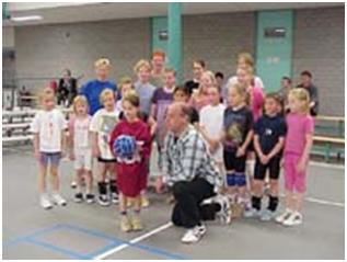 ![]() Het 200e lid met bal in zijn nieuwe trainingspak |